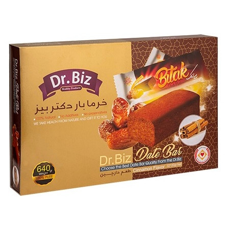 خرمابار دارچینی دکتر بیز یک اسنک کاملاً طبیعی و سالم است که از ترکیب خرما، دارچین، مغزیجات و فیبرهای گیاهی تهیه میشود.